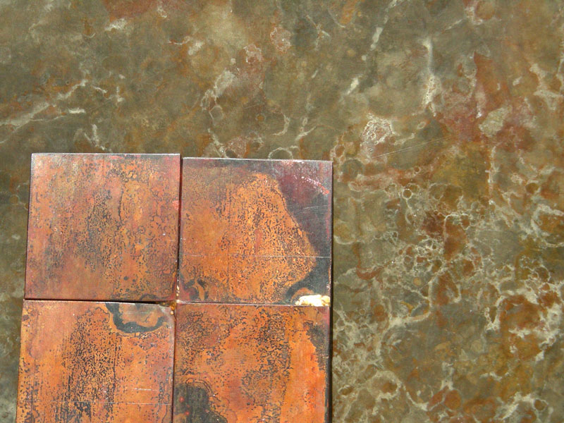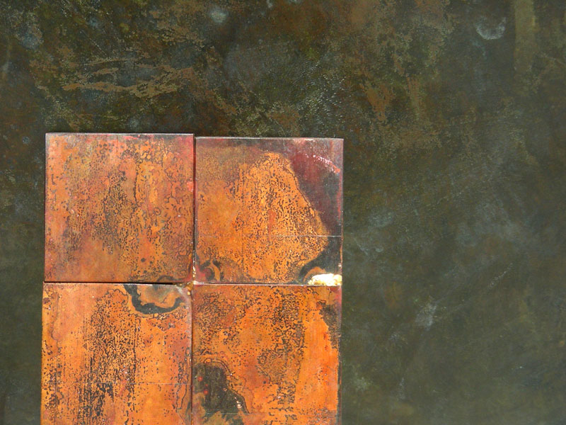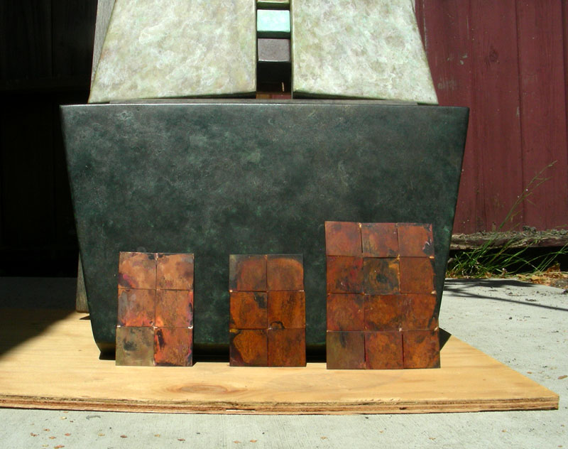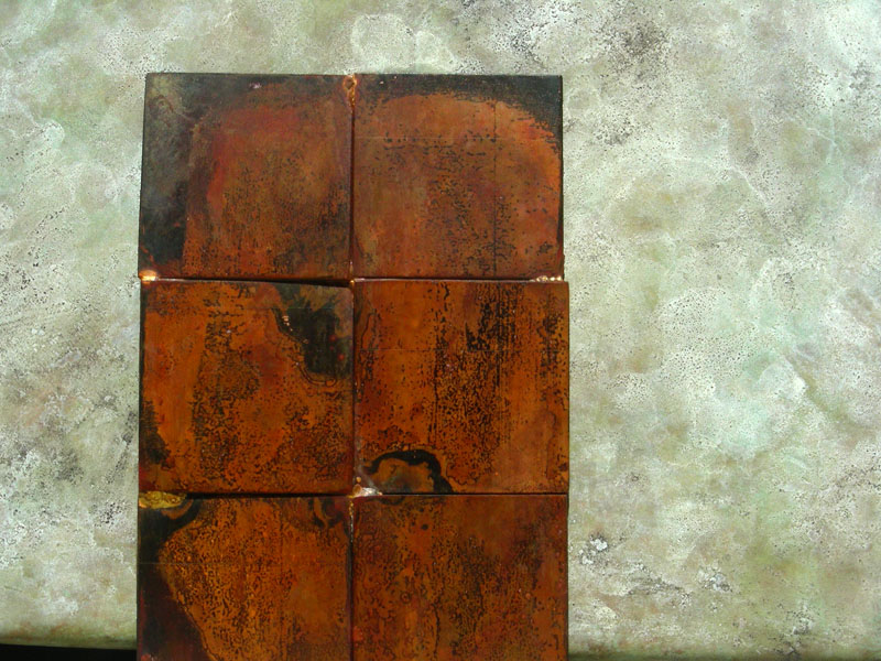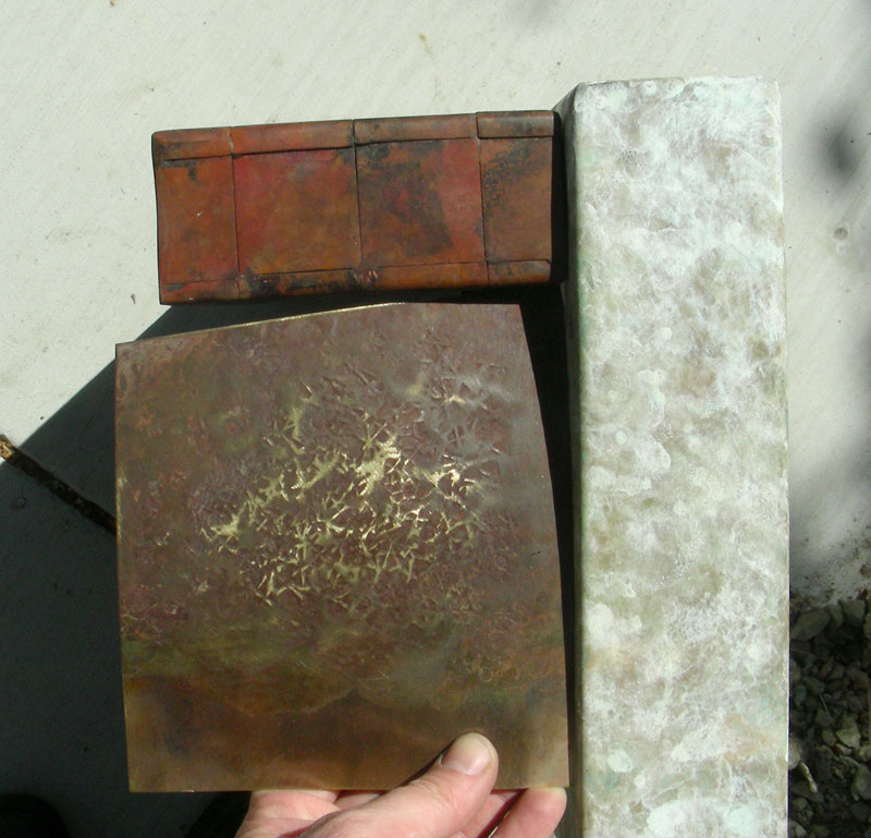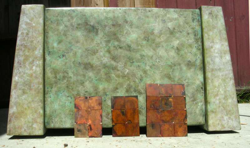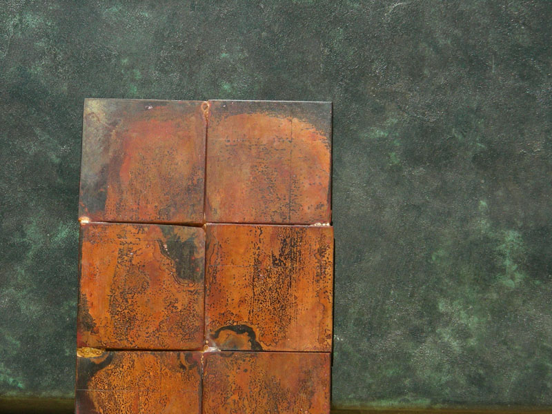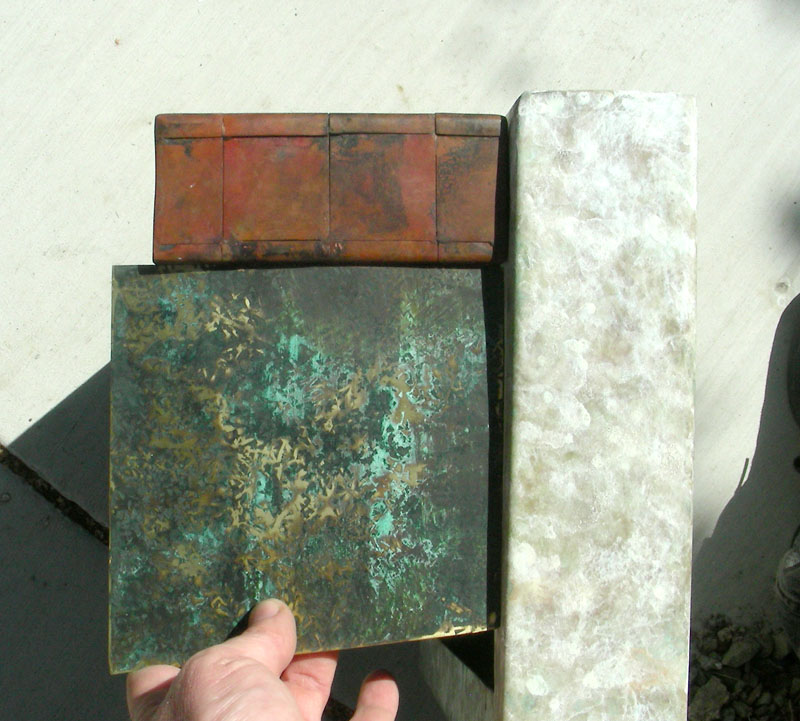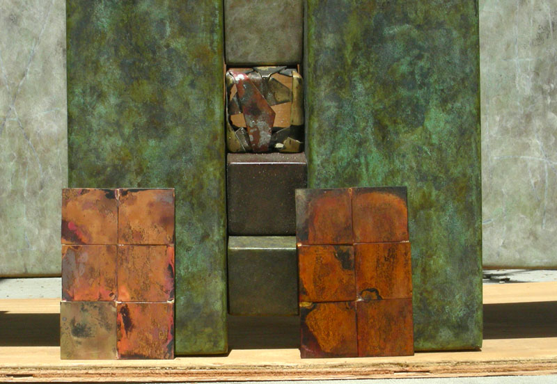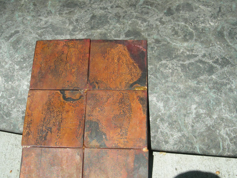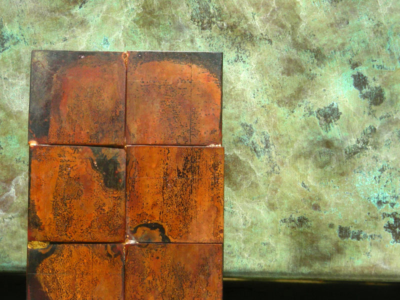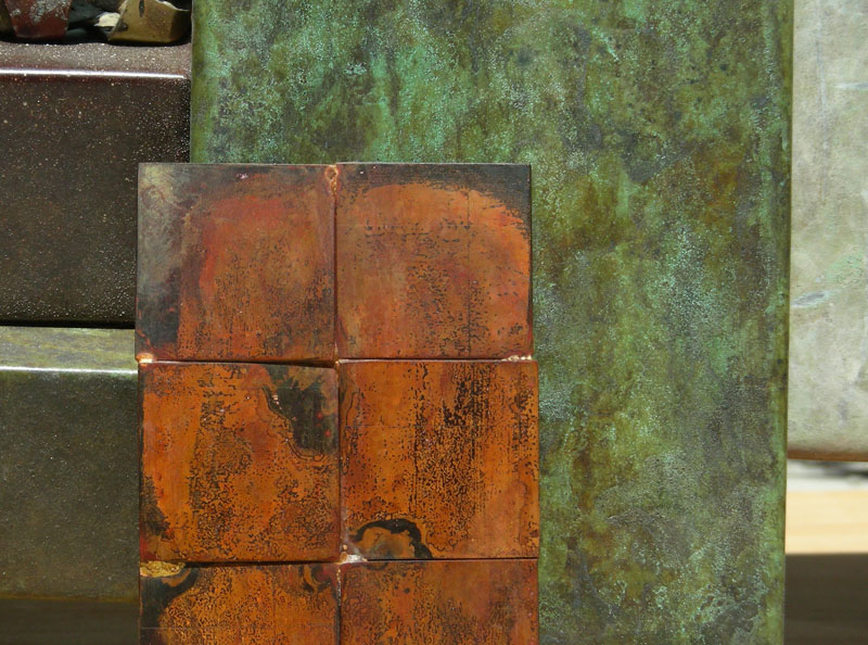 Pedestal Table 14 possibilities: patchwork brown-on-brown copper with other patinas |