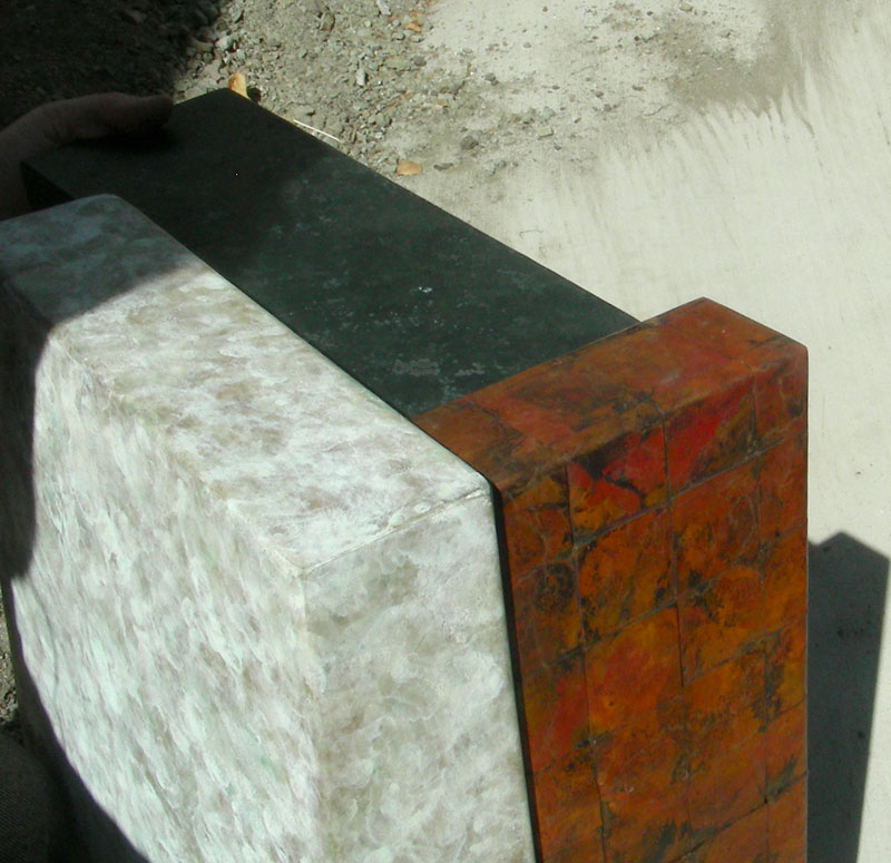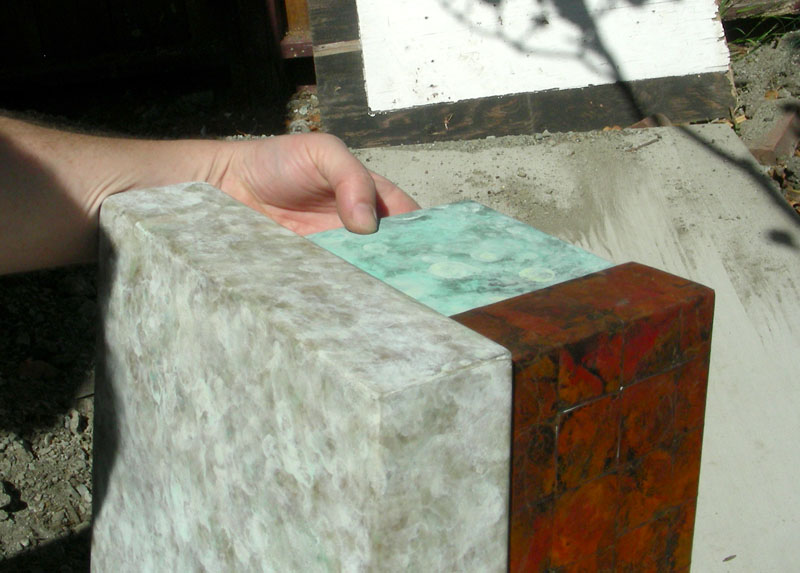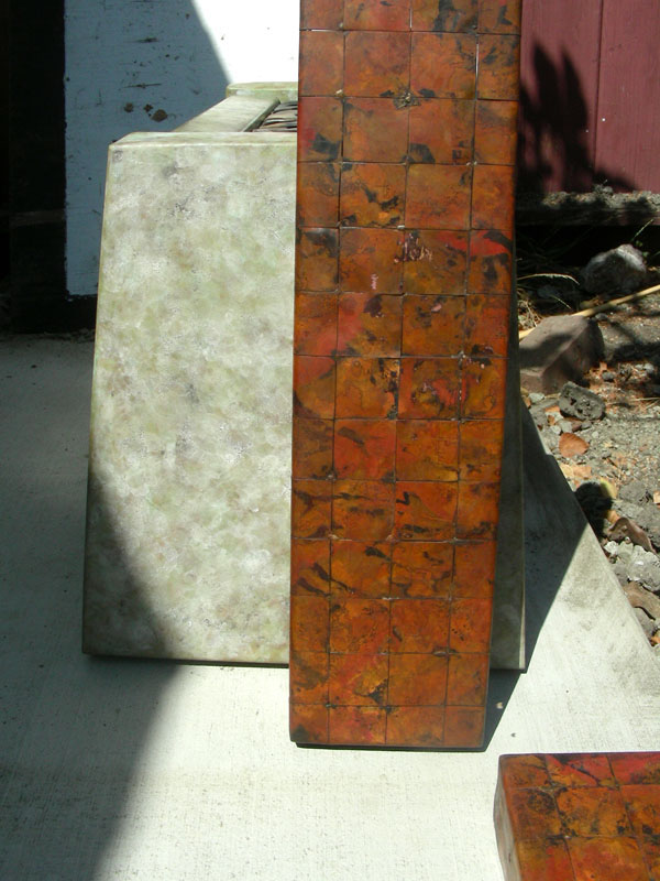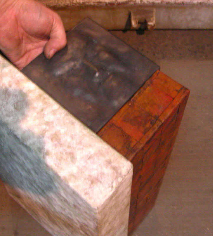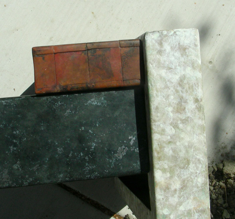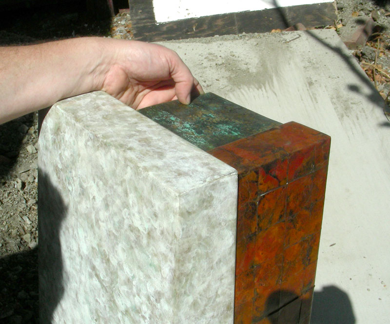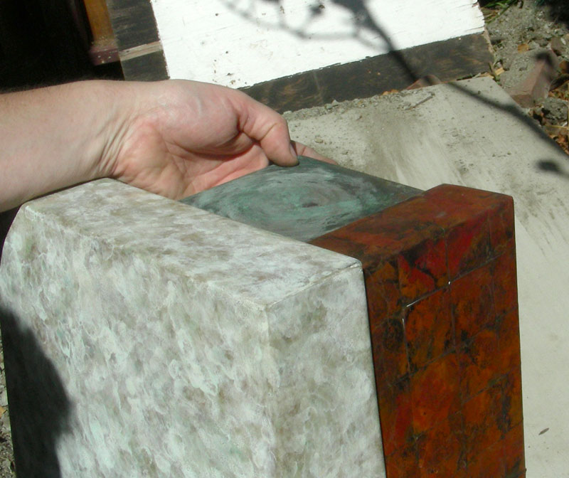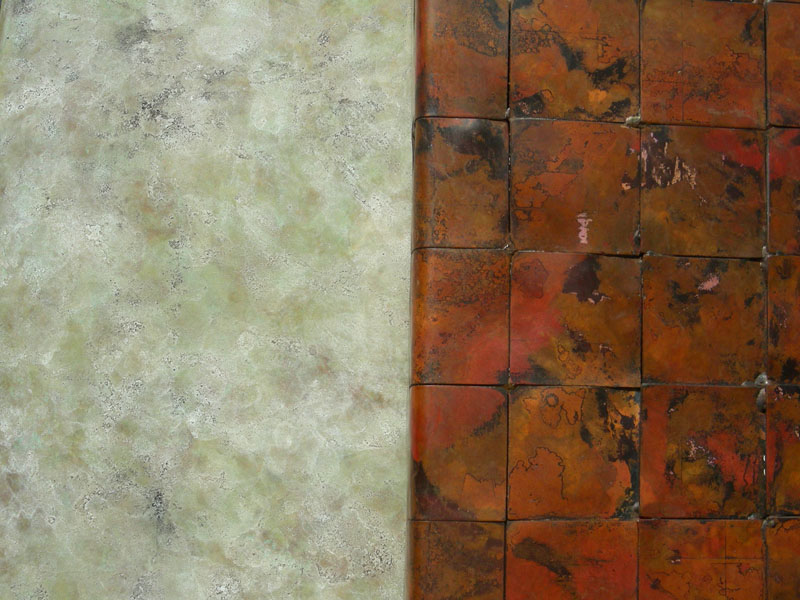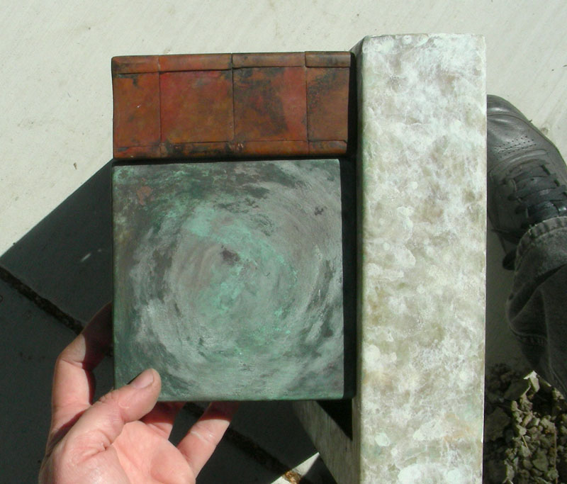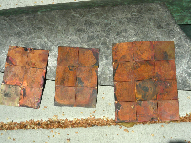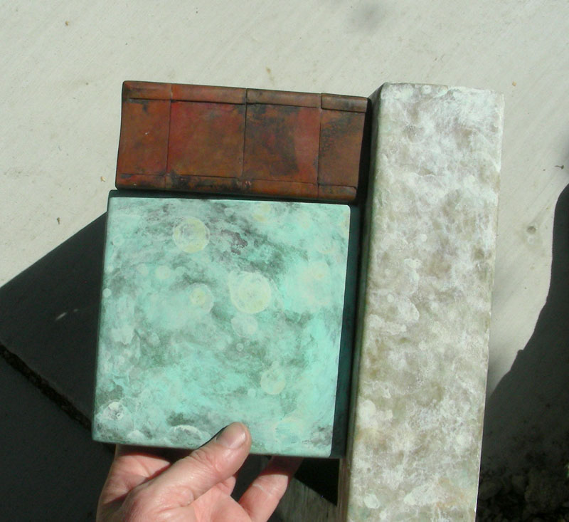 Pedestal Table 14 possibilities: patchwork brown-on-brown copper with other patinas |