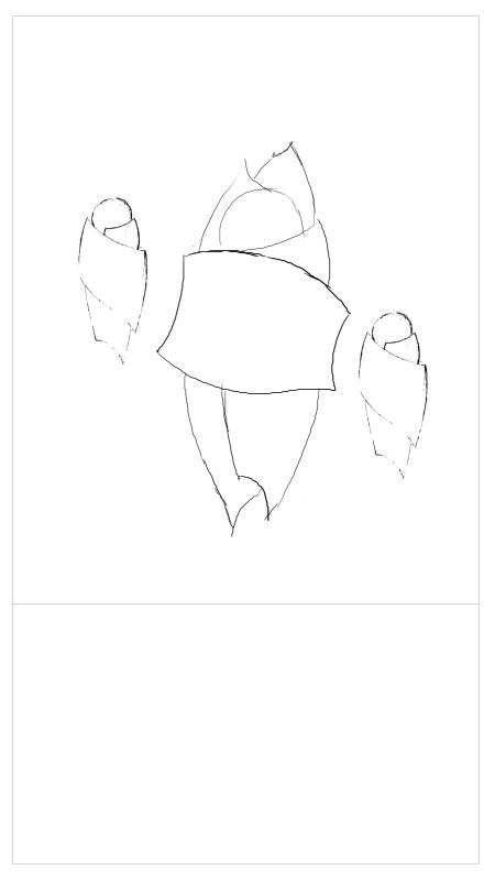 These are some ideas based on old sketches. I don't consider them fully developed proposals; they need work. Often I've just copied and pasted more than one copy to give a sense of potential composition ideas. I would NOT generally use multiple identical or mirror image pieces. Background represents 13'x7' wall with line at 4' to represent shelf.